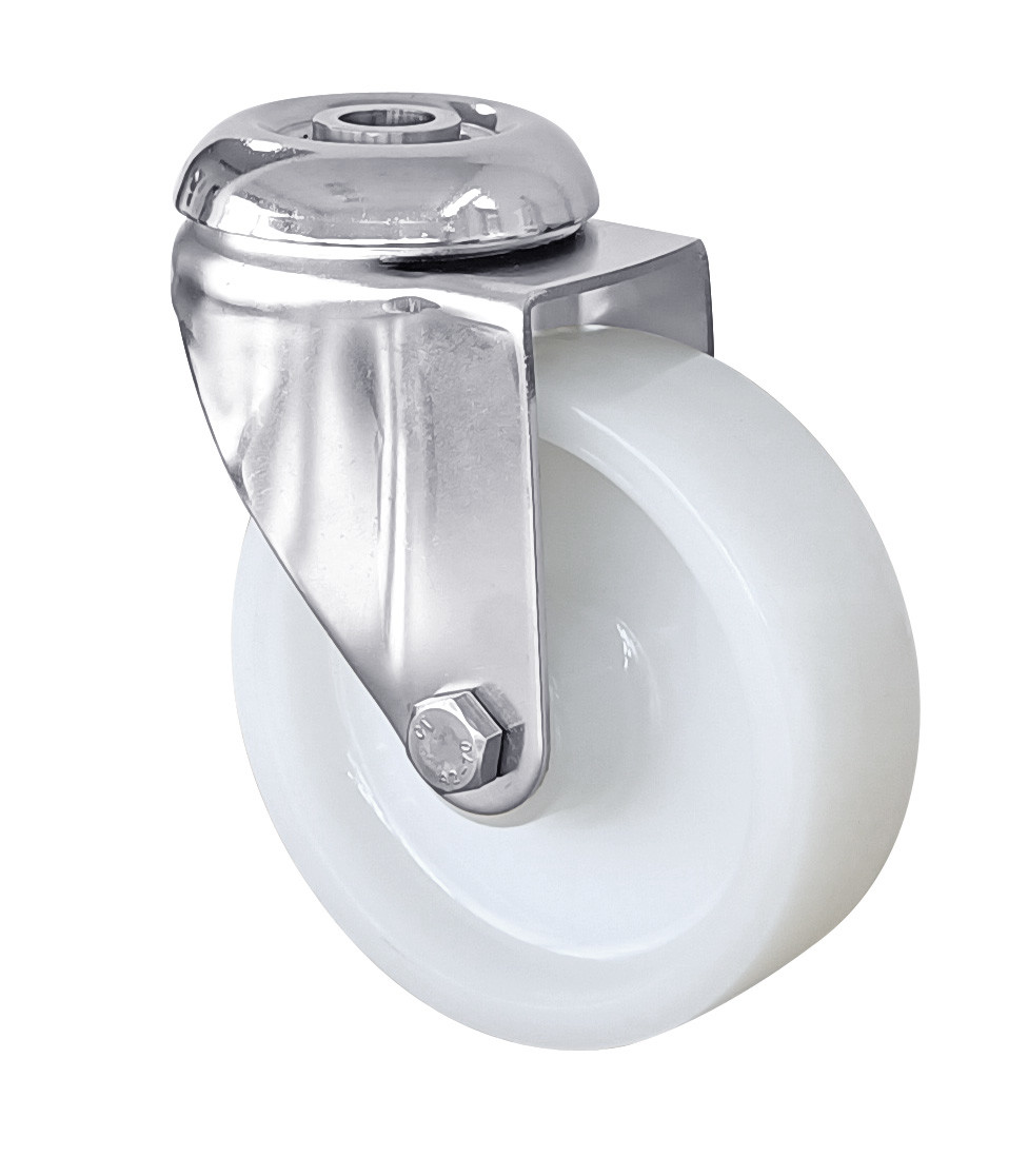 1.White PA Wheel: Polyamide (PA) tread for low noise, smooth rolling, and floor protection in clean environments.