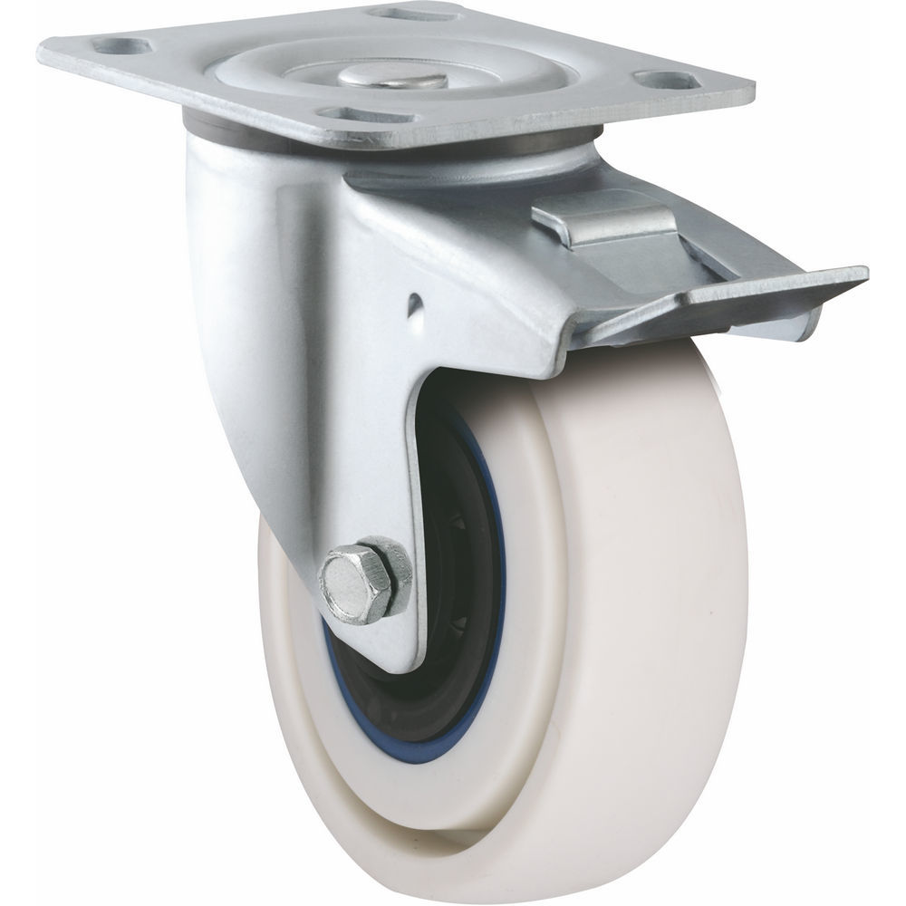 Combining European design elegance with medium heavy-duty functionality, these casters deliver 160-200kg load capacity through premium elastic rubber on nylon construction, offering superior noise reduction, vibration damping, and non-marking floor protection. The swivel brake enhances operational safety, while EU compliance ensures high manufacturing standards. Ideal for wholesale buyers seeking reliable, high-performance casters for industrial trolleys and heavy equipment with excellent cost-effectiveness.